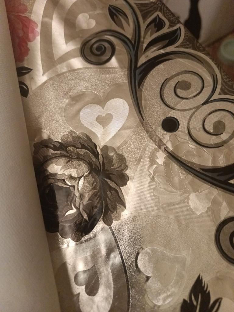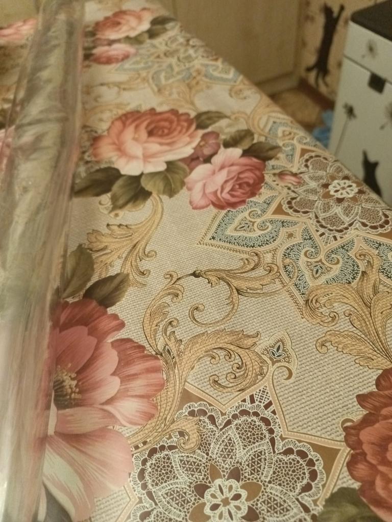 The tablecloth is beautiful, it fit the size, and the pattern matched the wallpaper.