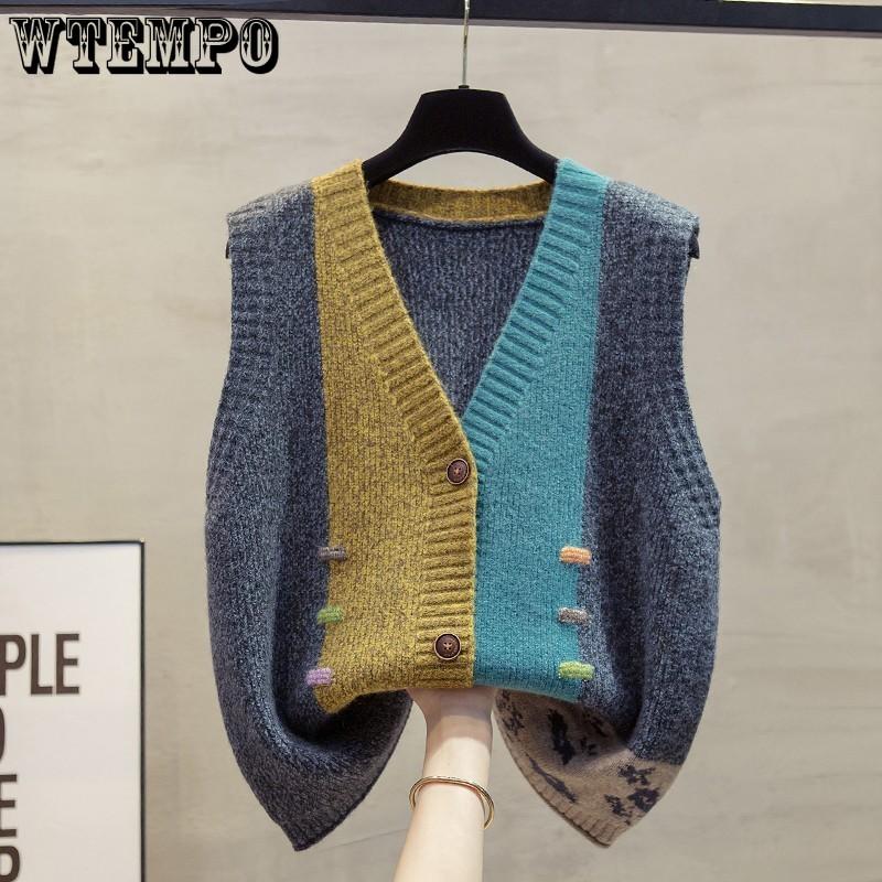 Female V-neck Knitted Vest Spring and Autumn Loose Outerwear Tank Top Sweater for Women