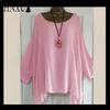 HNXC Women's Fashion Casual Solid Color Print O Neck Blouses & Shirts