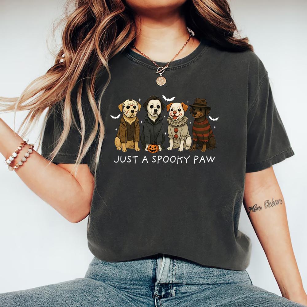 Just A Spooky Paw T-Shirt Halloween Dog T-shirts Halloween Characters Tee Funny Unisex Graphic T Shirts Spooky Season Shirt Top
