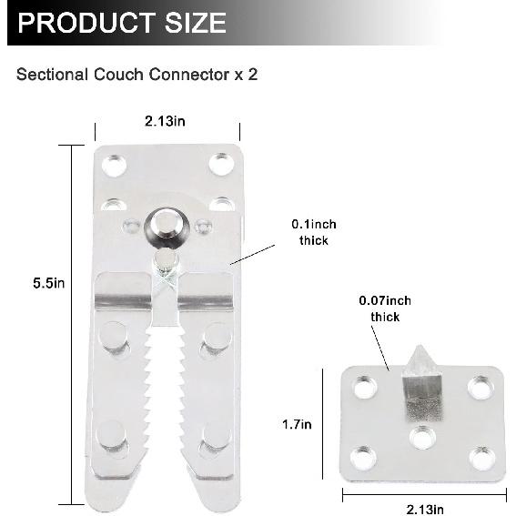 DEEPDREAM 2 Pack Sectional Couch Connectors Metal Couch Clips Sofa Connector Interlocking Furniture Connector with 24 Screws