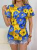 New Casual Women's Short-sleeved Blouse, Floral Print Round Neck Blouse, Fashion Short-sleeved T-shirt, Women's Clothing