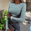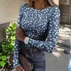 Women's Slim Bottom T-shirt Fashion Casual Gradient Printing Round Neck Pullover Long Sleeve Top