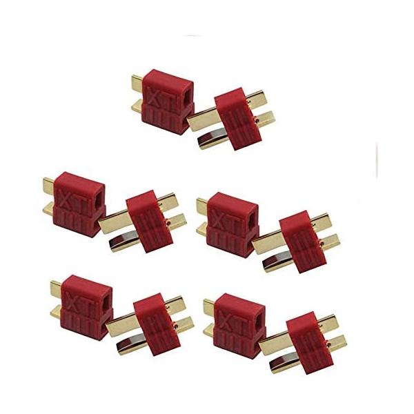 5 Pairs T-Plug Male and Female Connectors | 2-Pin Gold Adapter for LiPo Battery 300mAh | Compatible with WLtoys 144001 | Red Plastic Housing