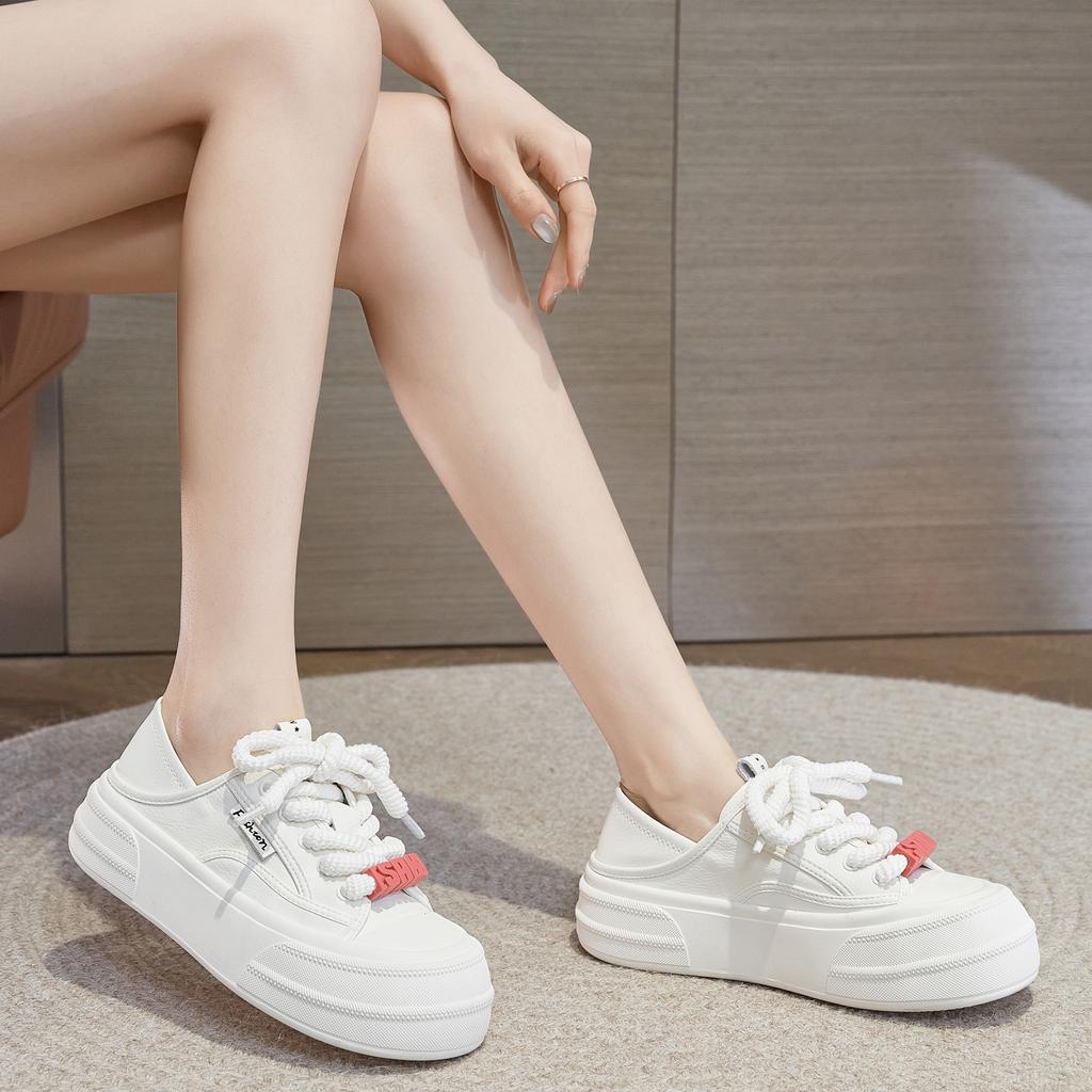 Leather Little White Shoes Women's Spring New Big Head Bread Shoes Versatile Thick Sole Height-increasing Sports and Leisure Board Shoes