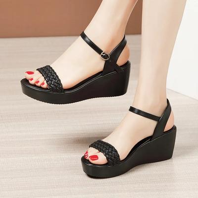 8cm Small Size 32-43 Comfortable Soft Leather Sandals Platform Shoes 2025 Womens High Heels Wedges Sandals for Office Beach Mom