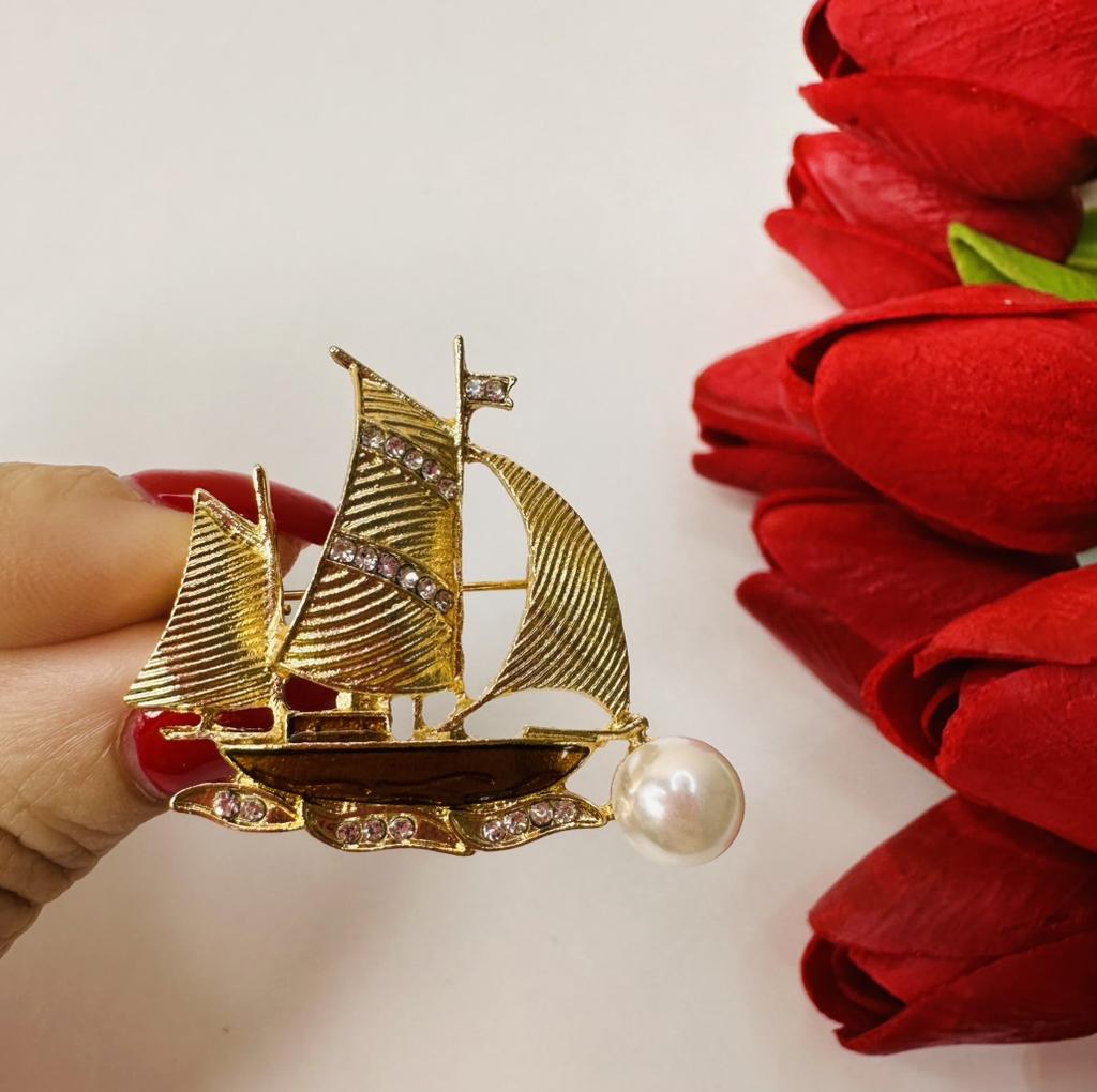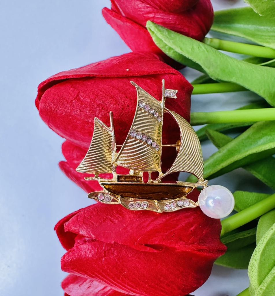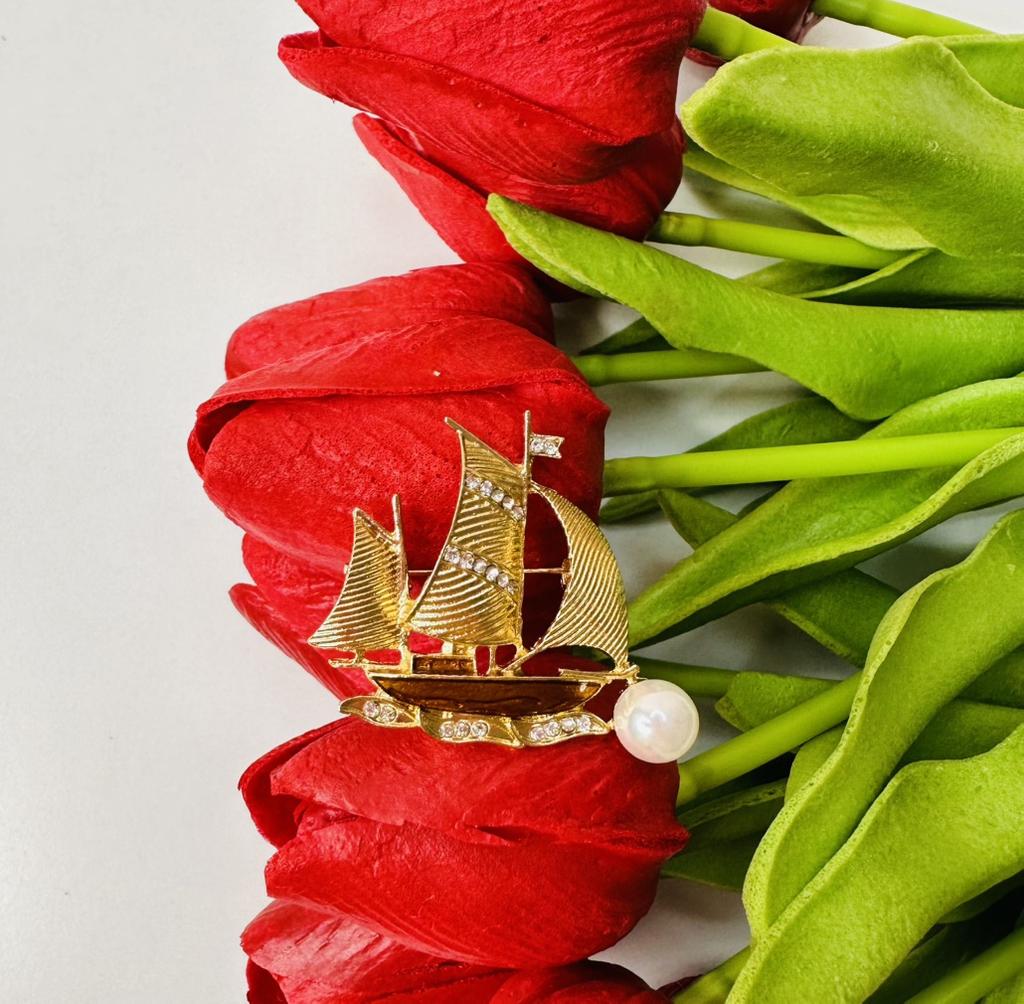 Smooth Sailing Sailboat Brooch High-end Light Luxury Elegant Feminine Brooch Suit Sweater Cardigan Corsage Accessory.