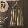 Hemp Wide-legged Pants Women Thin Simple Elastic Waist Versatile Casual Pants Seven Pants