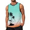 Muscle Man 3D Digital Printed Pattern Tank Top Sleeveless Beach Hawaiian Coconut Tree Tank Top Clothes