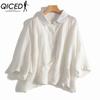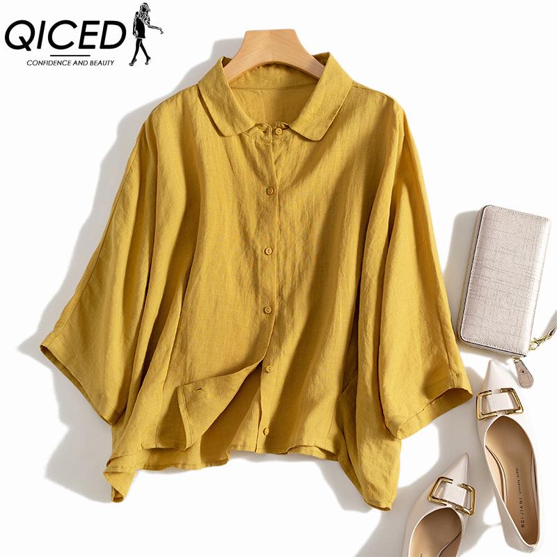 QICED Women's Fashion Casual Solid Color Print Long Sleeve POLO Neck Blouses & Shirts