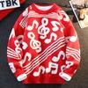 Hot Selling Fashion Music Towel Embroidered Jacquard Loose Sweater Comfortable Couple Knitwear