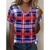T-Shirt Women Elegant Simple V-Neck Short Sleeve 3D Print Floral Print Top Summer Casual Ladies T-Shirt Vintage Pullover Tops