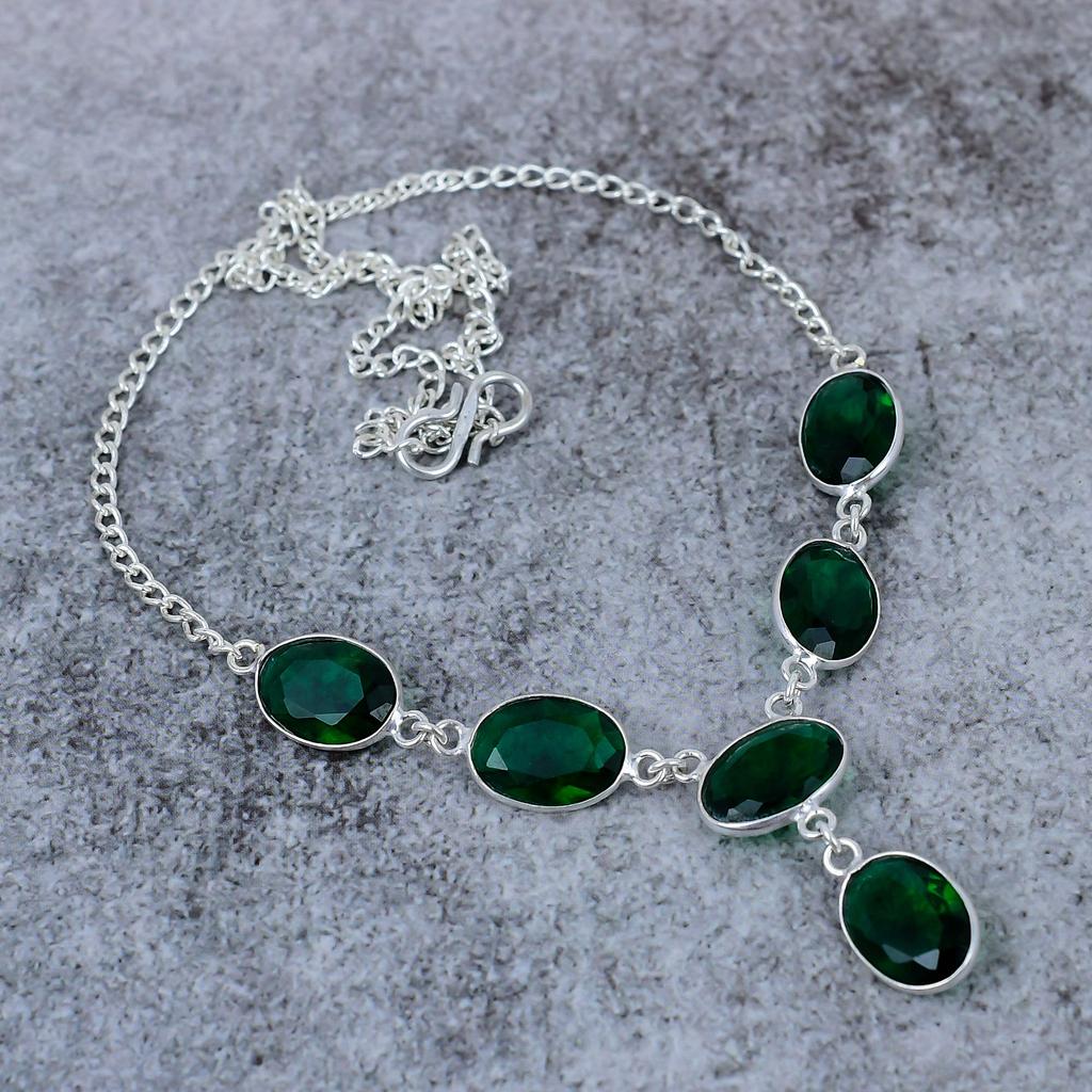 Chrome Diopside Gemstone Handmade 925 Sterling Silver Jewelry Necklace 18" M-395