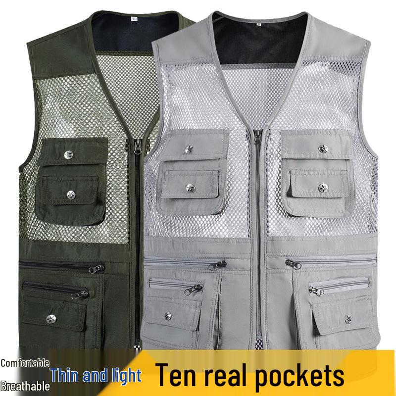 This men's sportive vest is the perfect companion for summer fishing and photography adventures. Designed with a loose fit and thin outerwear thickness, it ensures comfort and breathability in warm weather. The vest features a practical v-neck and a convenient zipper closure, adding both style and functionality. With multiple pockets, you can effortlessly carry your essentials. Made from a durable polyester material and enhanced with chemical fiber blended lace decoration, this vest is crafted to withstand outdoor activities while maintaining a modern and versatile look. Ideal for those seeking both performance and practicality.