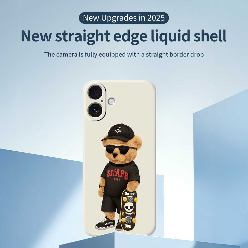 For iPhone 17 Case Cool Bear Pattern Printing Straight Edge TPU Phone Back Cover