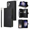 For Samsung Galaxy S25 FE Case Zipper Pocket PU Leather Phone Cover with Hand Strap