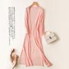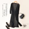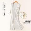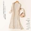 Stay cool and stylish this summer with the Women's Ice Silk Summer Cardigan with Skirt. Crafted from a luxurious artificial silk material known as ice silk, this ensemble offers a delightfully smooth and refreshing touch against your skin. Designed with a solid pattern, this mid-length outerwear features a loose fit for maximum comfort, making it ideal for sun protection or a light layer in air-conditioning. The cardigan showcases a flattering V-neckline, complemented by elegant 3/4 to 7/10 length sleeves, providing a chic yet relaxed vibe that's perfect for any casual outing. Embrace both fashion and functionality with this versatile piece, designed for the warm weather of 2021.