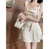 French Fairy Streamer Holiday Dress Skirt, Satin Chiffon Suspender Dress, One-word Shoulder Waist and Thin Tube Top Skirt