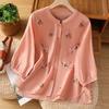 Literary Retro Embroidery Exquisite Dopamine Wear Half-sleeved Short-sleeved Cotton and Linen Shirt Spring and Summer New Versatile