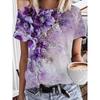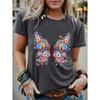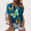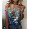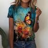 Summer Round Neck 3D Flowers Butterflies Dragonflies Pattern Print Top Fashionable Casual Short Sleeved Women's T-shirts