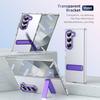 Luxury High Definition Transparent Phone Case for Samsung Galaxy Z Fold 7 6 5 4 Metal Holder Stand Screen Protector Shockproof Back Protect Cover
