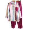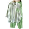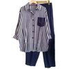 Striped shirt suits are elastic waist, suitable for work, school, street clothing.