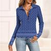 Women's Fashion Casual Printed V-Neck Long Sleeve Button-Down Top