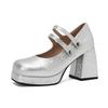 Plus Size Double Row Metal Buttons Ultra-High Thick Heels Korean Style High Heels Square Toe Platform Breathable Hollow Pumps
