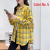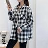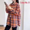 Elevate your seasonal wardrobe with this stylish women's plaid shirt, inspired by Korean fashion. Crafted from soft, brushed cotton, this mid-length piece offers a loose fit for effortless comfort and a touch of retro charm. Designed with long sleeves and a classic turn-down collar, it provides a versatile layer perfect for both spring and autumn. Available in plus sizes, this shirt can be worn alone or as a lightweight jacket, making it a must-have addition to your transitional wardrobe.