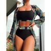Women Bikini 3 Pieces Suit Black/Green/Red Bikini Sets with Long Sleeved Cover Ups High Quality Size Small-XXLarge