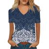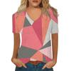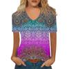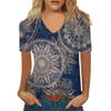Summer V-neck 3D Abstract Retro Pattern Printed Top Fashionable Casual Short Sleeved Women's T-shirts