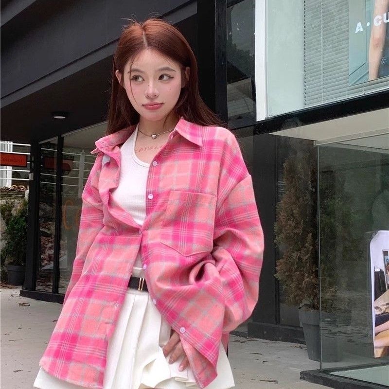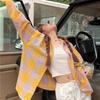 Color Blocking Checkered Women's Shirt Thin Loose Casual Sunscreen Shirts Spring Long Sleeved Lapel Female's Blouses