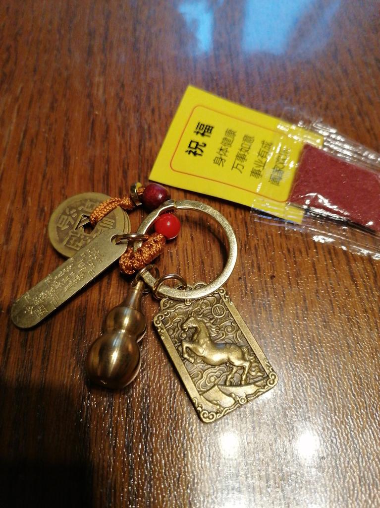 Double-Sided Zodiac & Martial God Zhao Gongming Keychain with Five Emperor Coins & Gourd
