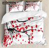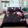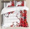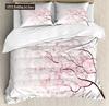 Japanese Duvet Cover Set,Branch Of A Flourishing Sakura Tree Flower Cherry Blossoms Spring Theme Art Japan Bedding Set Full Size
