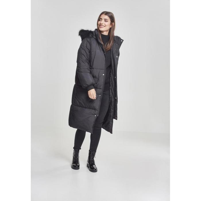 Women's Parka - Urban Classics - Faux Fur Puffer Coat - Long - Black - Comfortable and Stylish