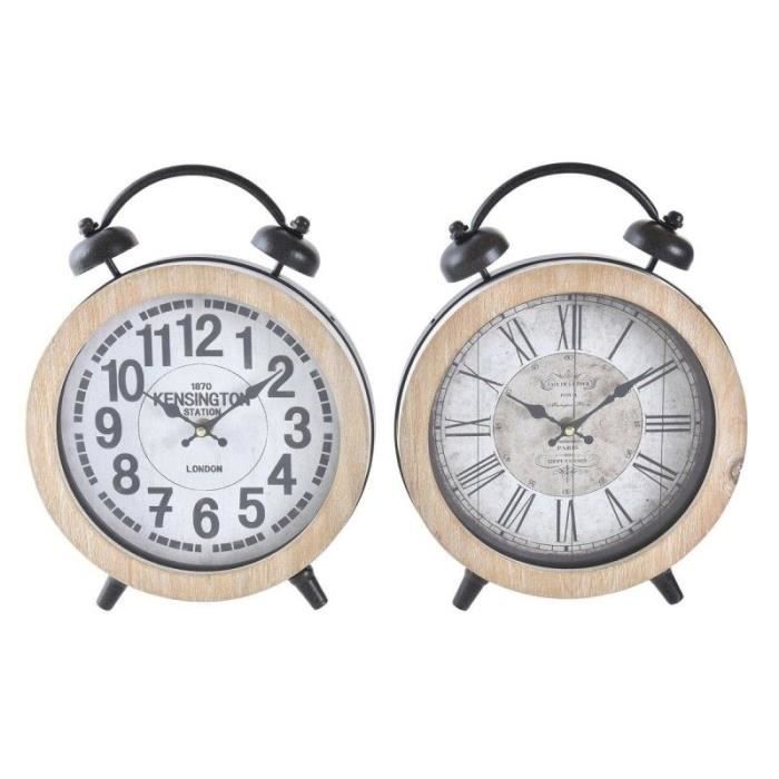 Horloge De Table Thyann Naturel MDF Blanc Fer (25,8 X 8 X 32 Cm) (2 Unités)
