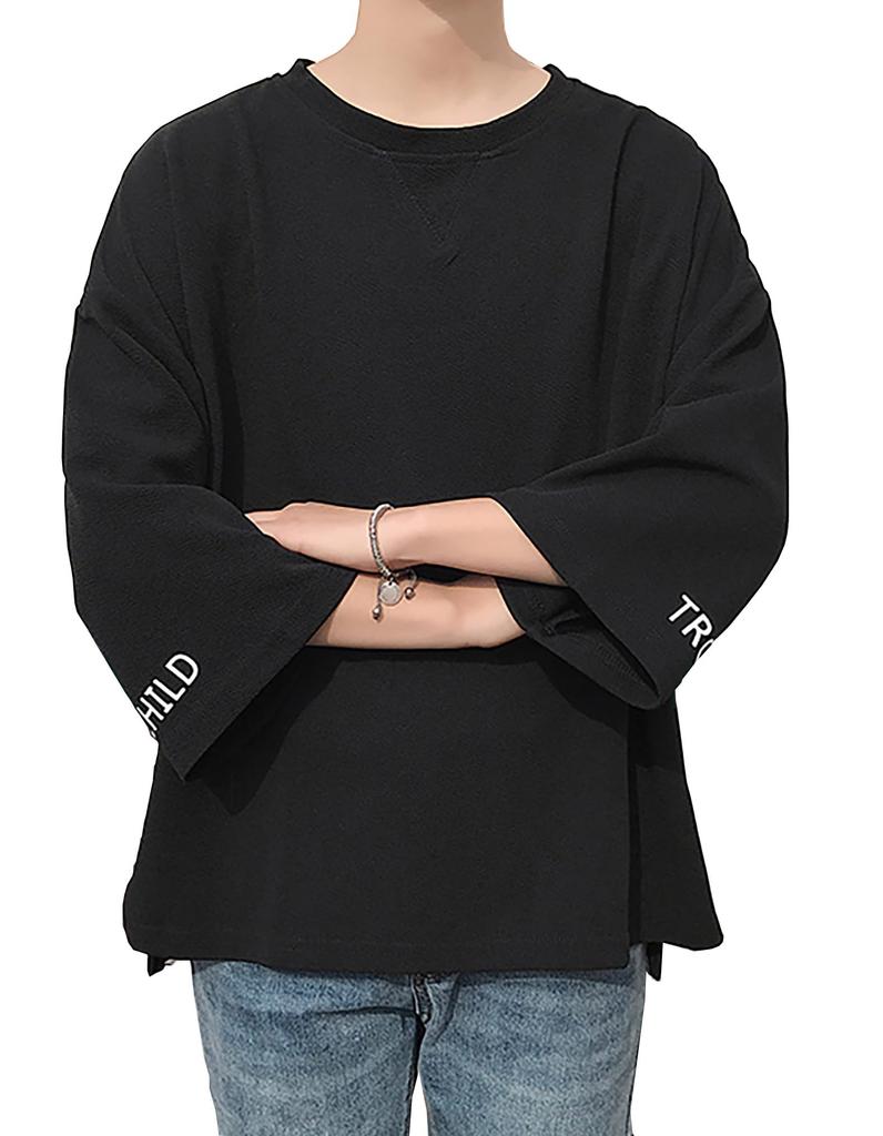 2 Big Drop Shoulder MF91 [Make Be] Loose, Wide, Silhouette, T-shirt, Men's, 3/4 Sleeve, Summer, (01.Black_M)