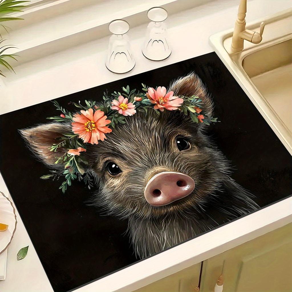 1Pcs Rubber Drying Mat With Capybara Floral Print For Coffee Shop Restaurant Kitchen Carpet Tableware Durable Diatom Mud Table Mat Pet Mat Coffeeware