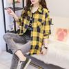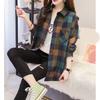 Spring and Autumn Lapel Button Plaid Shirt Women's Mid-length Sunscreen Jacket