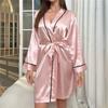 Women's Satin Robe V-Neck Kimono Bathrobe Loungewear Faux Silk Sleepwear for Home & Spa