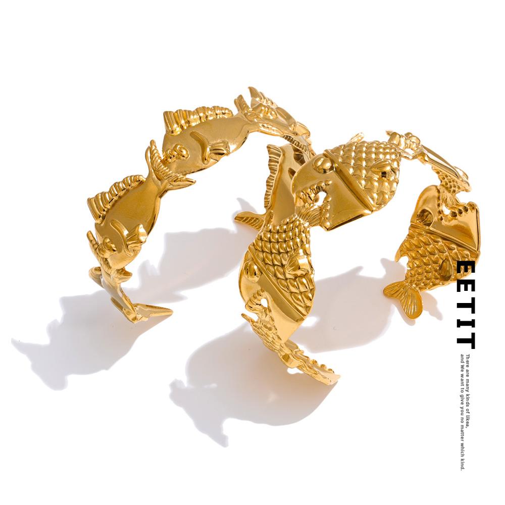 Eetit Adjustable 18K PVD Plated Metal Fish Shark Cuff Summer Bracelet Bangle Stainless Steel Beach Holiday Golden Jewelry
