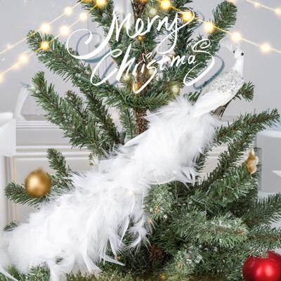 16in White Peacock Tree Topper Artificial Long Tail Glitter Peacock Clip Ornaments Faux Simulation Feathered Peacock for Christmas Tree Decor