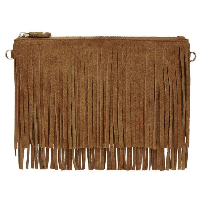 Pochette à franges ET chargeur de téléphone Marron