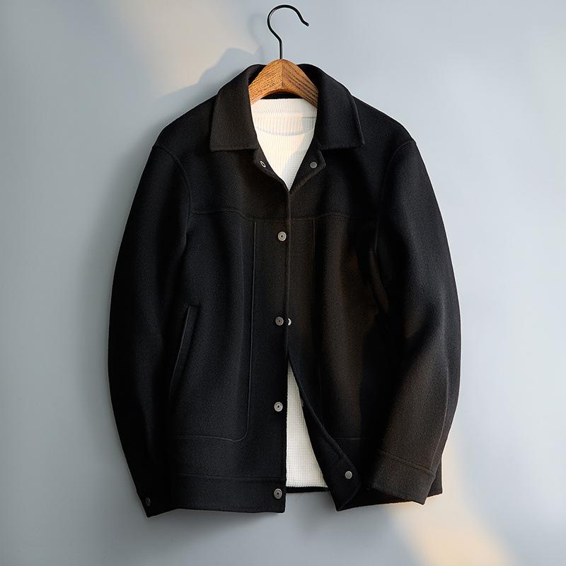 Handmade Double-sided Tweed Jacket Men's Autumn and Winter New Men's Clothing Trendy Brand Casual Lapel Wool Coat