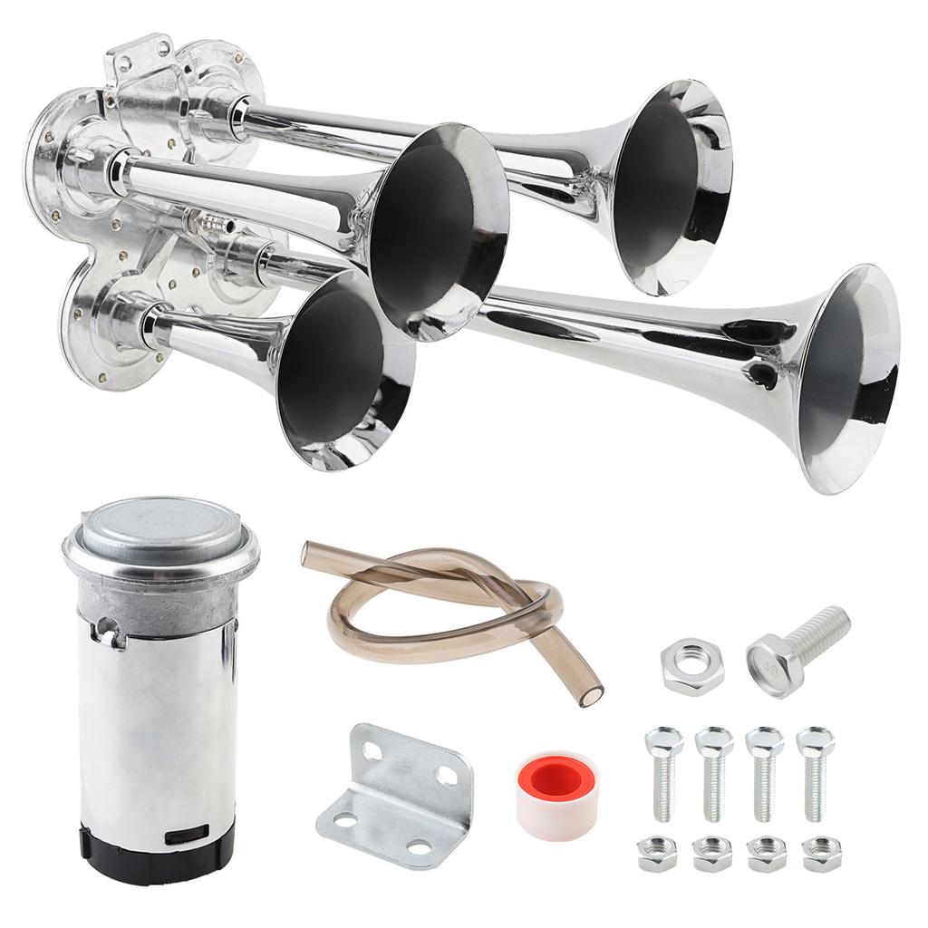 12V 185dB Four Trumpet Air Horn with Compressor - Silvery Musical Sound for Trucks / Cars