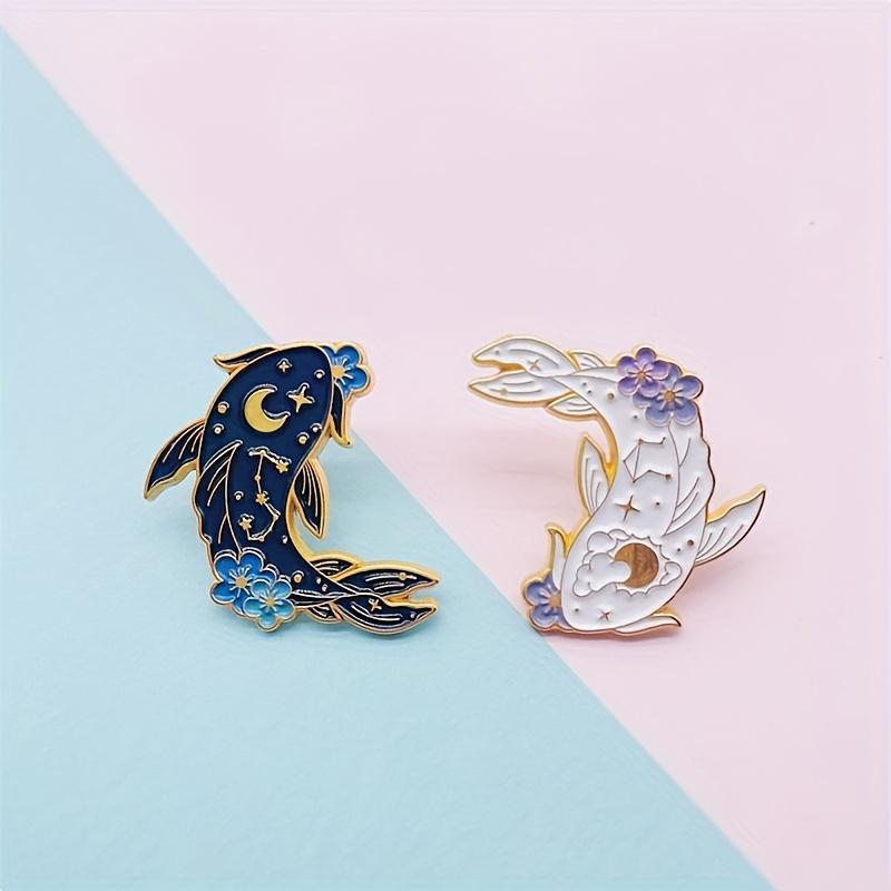 Couple's Personalized Lucky Carp and Koi Fish Brooch Accessories, Black and White Fish Best Friend Couple Set, Badge Jewelry for Women