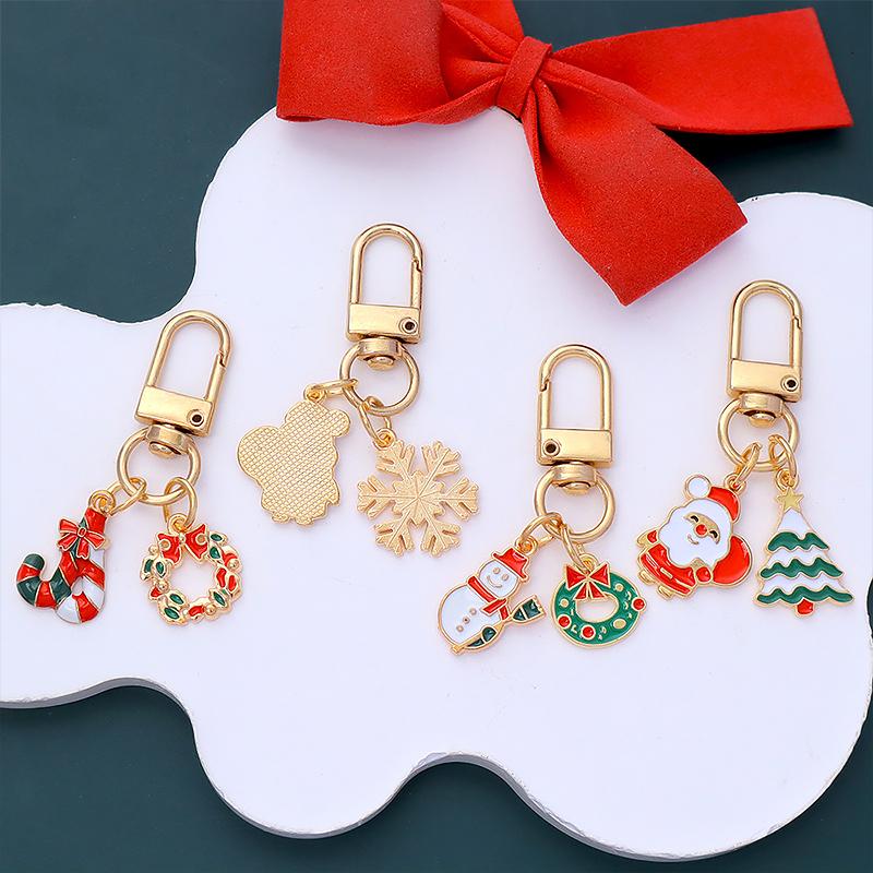 Product Name: 1PC Christmas Keychain Enamel Alloy Keyring with Santa, Bell, And Tree Charms Decorative Clip for Keys Keyholders