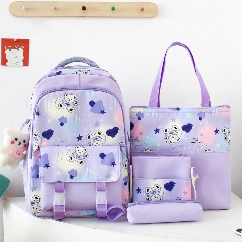 School Bag New Cute Girls School Bag Dream Color Primary School Junior High School Versatile Backpack Four-piece Cartoon Backpack