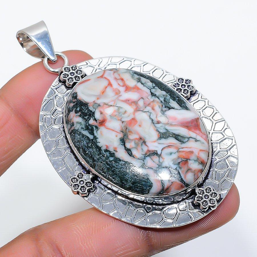 Pinolith Gemstone Handmade 925 Sterling Silver Jewelry Pendant 2.76" SU-9939
