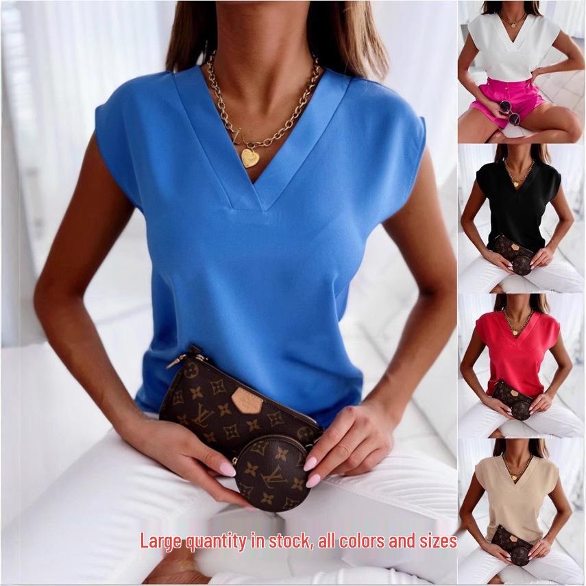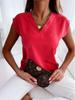 2025 Women's Summer Solid V-Neck Short Sleeve Blouse